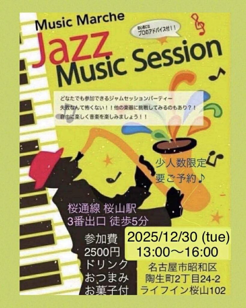 セッション会場はミュージックマルシェ新栄教室、桜山サロン、名古屋市内のライブハウス等にて。